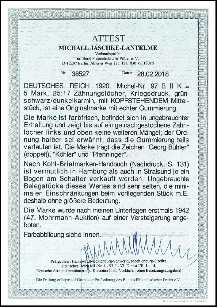 | Prüfer: | Jäschke-Lantelme, Michael (BPP (Bund Philatelistischer Prüfer)) |