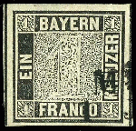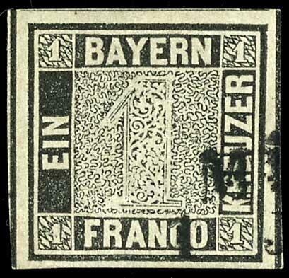 | Zusatzinformationen und Suchstichworte: | Dr. Reinhard Fischer 191. Auktion 31. März - 28. April 2023 Los 14 Altdeutschland Bayern 1 Kreuzer schwarz, Platte 1, voll- bis breitrandiges Kabinettstück, entwertet mit Zweizeiler "MÜ(NCHEN ...", gepr. Drahn und Fotoattest Sem BPP (2023): "einwandfrei erhalten. Gut gerandeter "Schwarzer Einser"." Ausruf 1.200,00 EUR |