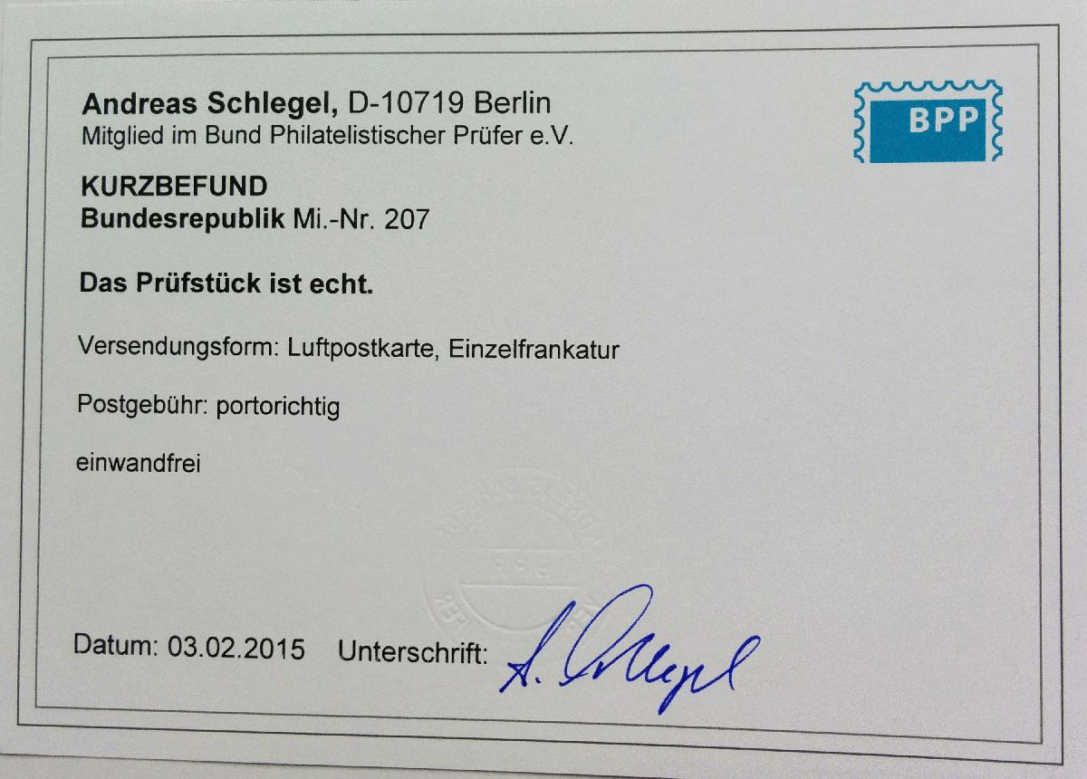| Prüfer: | Schlegel, Andreas (BPP (Bund Philatelistischer Prüfer)) |