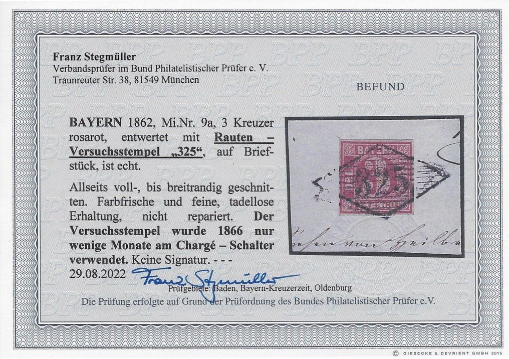 | Prüfer: | Stegmüller, Franz (BPP (Bund Philatelistischer Prüfer)) |