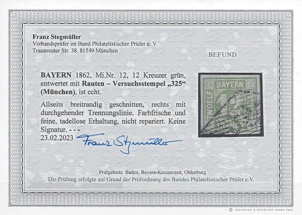 | Prüfer: | Stegmüller, Franz (BPP (Bund Philatelistischer Prüfer)) |