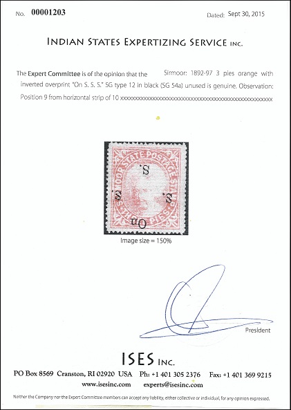 | Prüfgebiet: | Indien - Feudalstaat Sirmur |