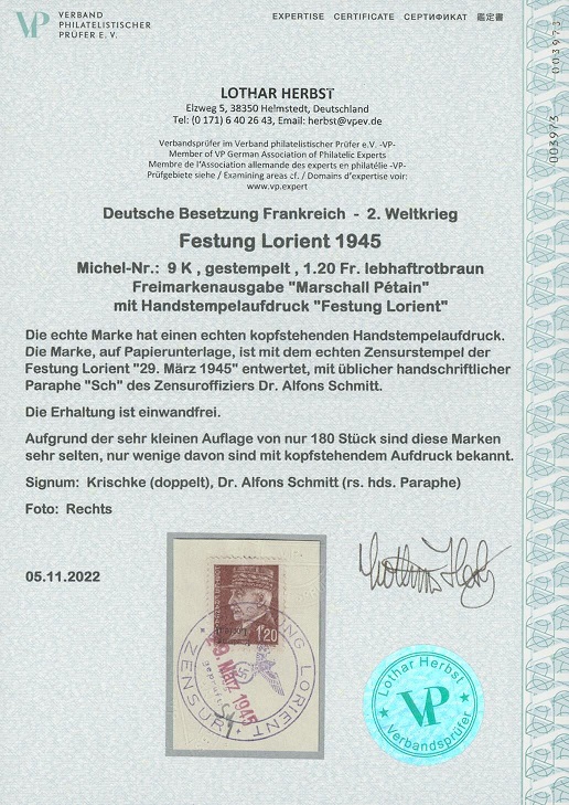 | Prüfgebiet: | Deutsche Besetzung WK 2 Frankreich Lorient |