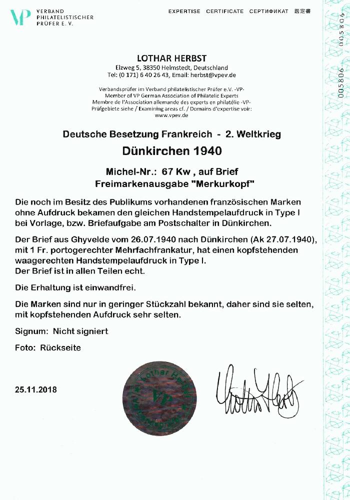 | Prüfgebiet: | Deutsche Besetzung WK 2 Frankreich Dünkirchen |