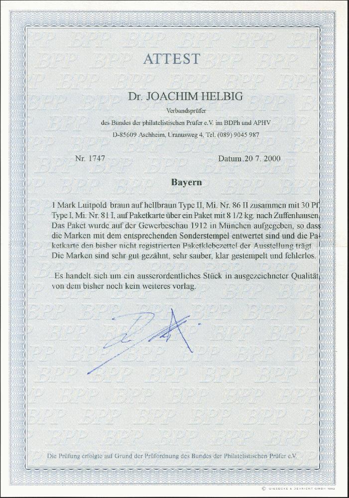 | Prüfer: | Helbig, Joachim (BPP (Bund Philatelistischer Prüfer)) |