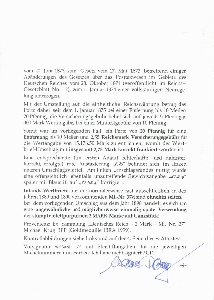 | Prüfgebiet: | Deutsches Reich 1871 - 1918 (Mi-Nr. 1 - 106) |