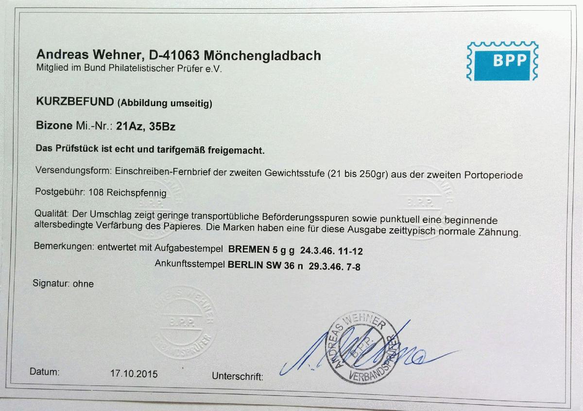 | Prüfgebiet: | Alliierte Besetzung Bizone |