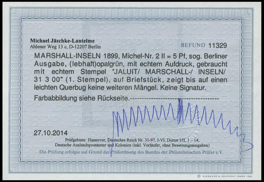 | Zusatzinformationen und Suchstichworte: | nordphila 491. Briefmarkenfernauktion 5. Juni 2023 Los 1923 Deutsche Kolonien Marshall Inseln 1899, 5 Pf. "Berliner Ausgabe", 1. Stempel "JALUIT", waagerechte Bugspur sonst Prachtbriefstück, Fotoattest Jäschke-L., Mi. 800.- Ausruf 220,00 EUR |