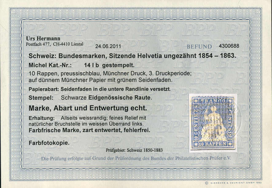 | Prüfer: | Hermann, Urs (BPP (Bund Philatelistischer Prüfer)) |