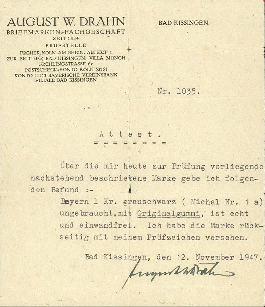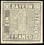 | Zusatzinformationen und Suchstichworte: | 7. Großposten-Auktion Deutsche Briefmarken AG 13. Juni 2023 Los 137 D Altdeutschland Bayern 1849, legendärer "Schwarzer Einser" ungebraucht und gut gerandet in frischer Farbe Ausruf 1.000,00 EUR |