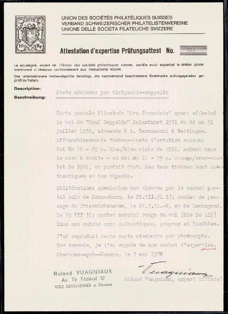 | Prüfgebiet: | Schweiz - Flugpost |