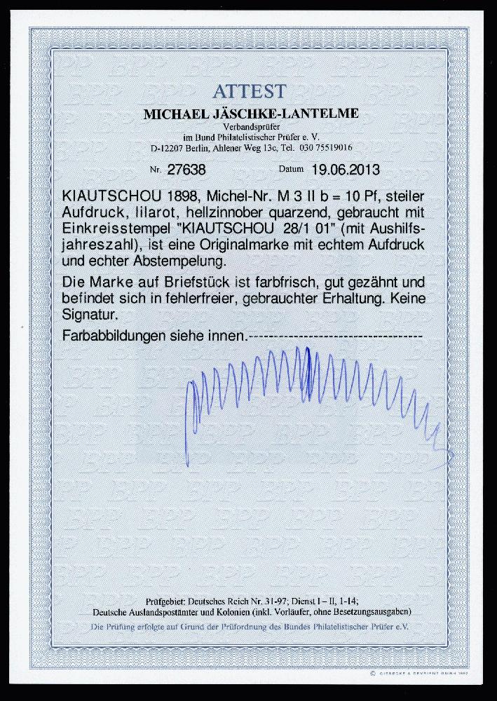 | Prüfer: | Jäschke-Lantelme, Michael (BPP (Bund Philatelistischer Prüfer)) |