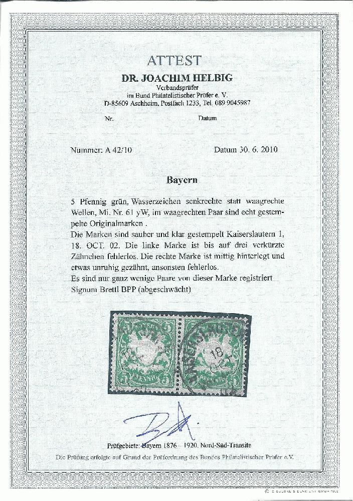 | Prüfer: | Helbig, Joachim (BPP (Bund Philatelistischer Prüfer)) |