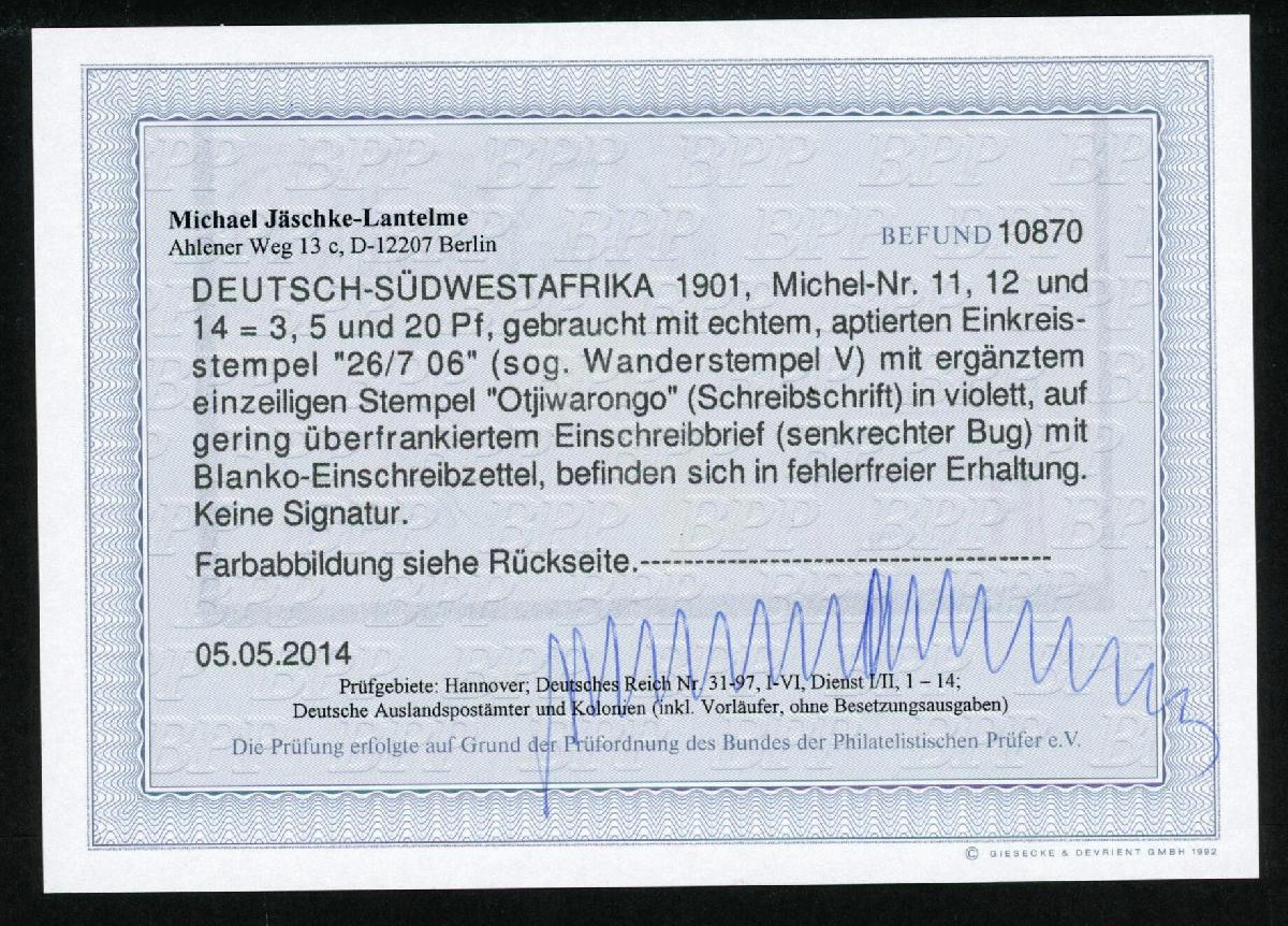 | Prüfgebiet: | Deutsche Kolonien Deutsch-Südwestafrika |