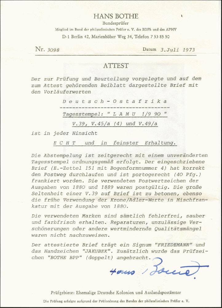 | Prüfgebiet: | Deutsche Auslandspostämter Lamu |