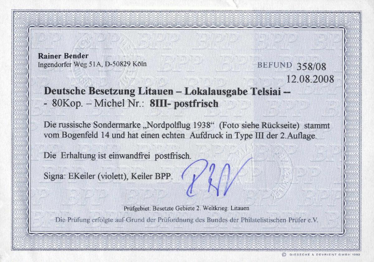 | Prüfgebiet: | Deutsche Besetzung WK 2 Litauen Telšiai |