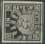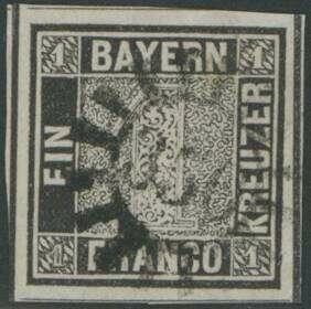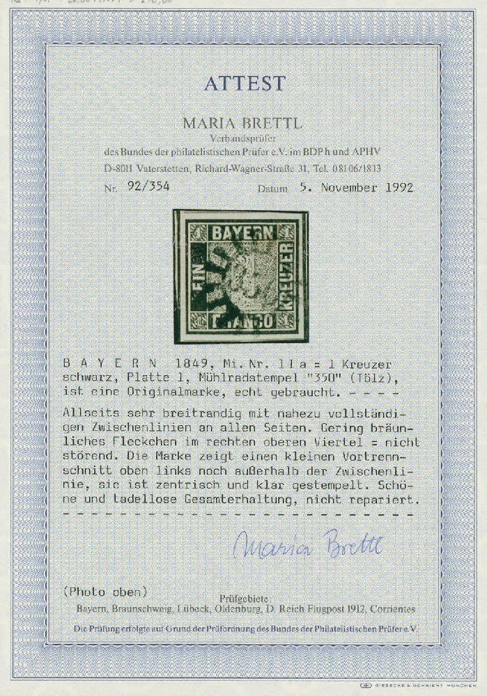 | Zusatzinformationen und Suchstichworte: | Ulrich Felzmann 178. Auktion 22. Juni 2023 Los 2473 Altdeutschland Bayern 1 Kr schwarz, Platte 1, farbfrisch und ringsum breit- bis überrandig mit allseits (!) nahezu durchgehenden Trennungslinien, geringe bräunliche Fleckchen im rechten oberen Viertel sowie ein kleiner Vortrennschnitt lediglich links oben, noch außerhalb der Zwischenlinie, sind völlig unauffällig, authentisch und absolut nicht störend, ungemein attraktiv mit zentrisch und sauber aufsitzendem gMr "350" - TÖLZ, Fotoattest Brettl BPP "Schöne und tadellose Gesamterhaltung" Ausruf 1.000,00 EUR |