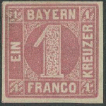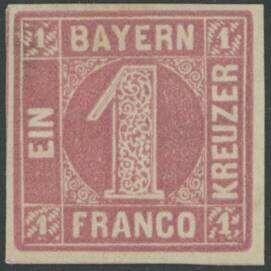 | Zusatzinformationen und Suchstichworte: | Ulrich Felzmann 178. Auktion 22. Juni 2023 Los 2479 Altdeutschland Bayern 1 Kr rosa von Platte 1 mit runden Ecken, ungebraucht in ringsum tadellos voll- bis breitrandiger, farbfrischer Kabinetterhaltung, Fotobefund Sem BPP Ausruf 100,00 EUR |