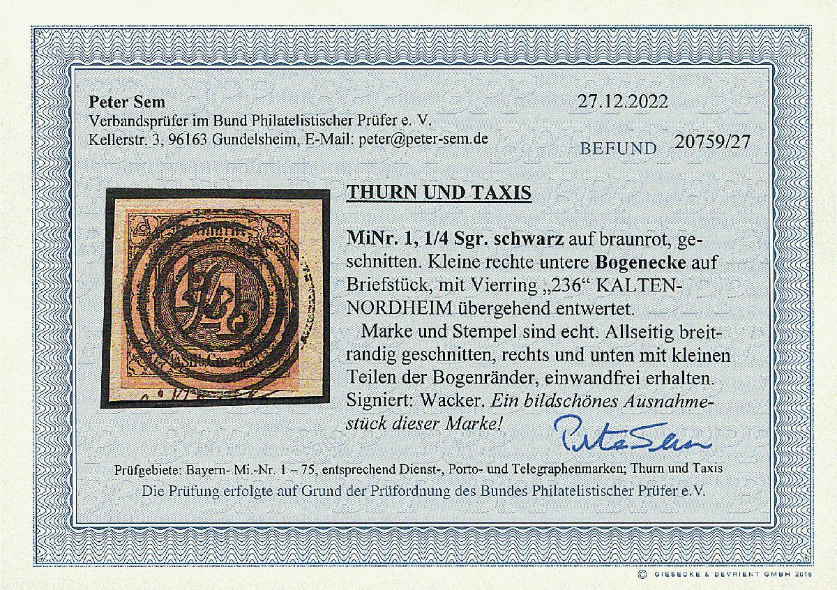 | Prüfgebiet: | Altdeutschland Thurn und Taxis |