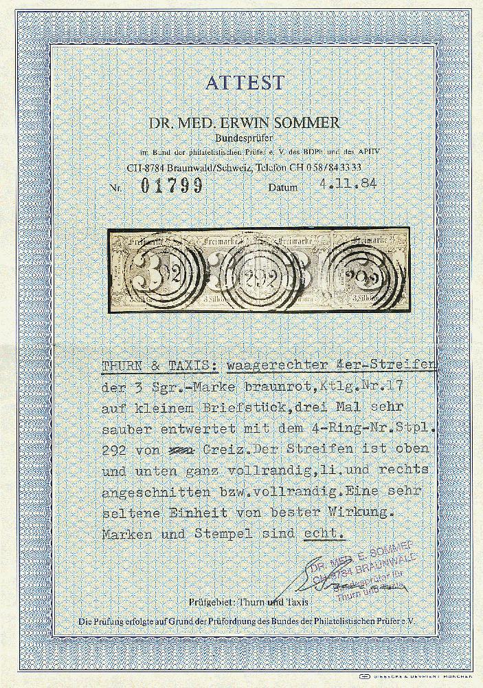 | Prüfgebiet: | Altdeutschland Thurn und Taxis |