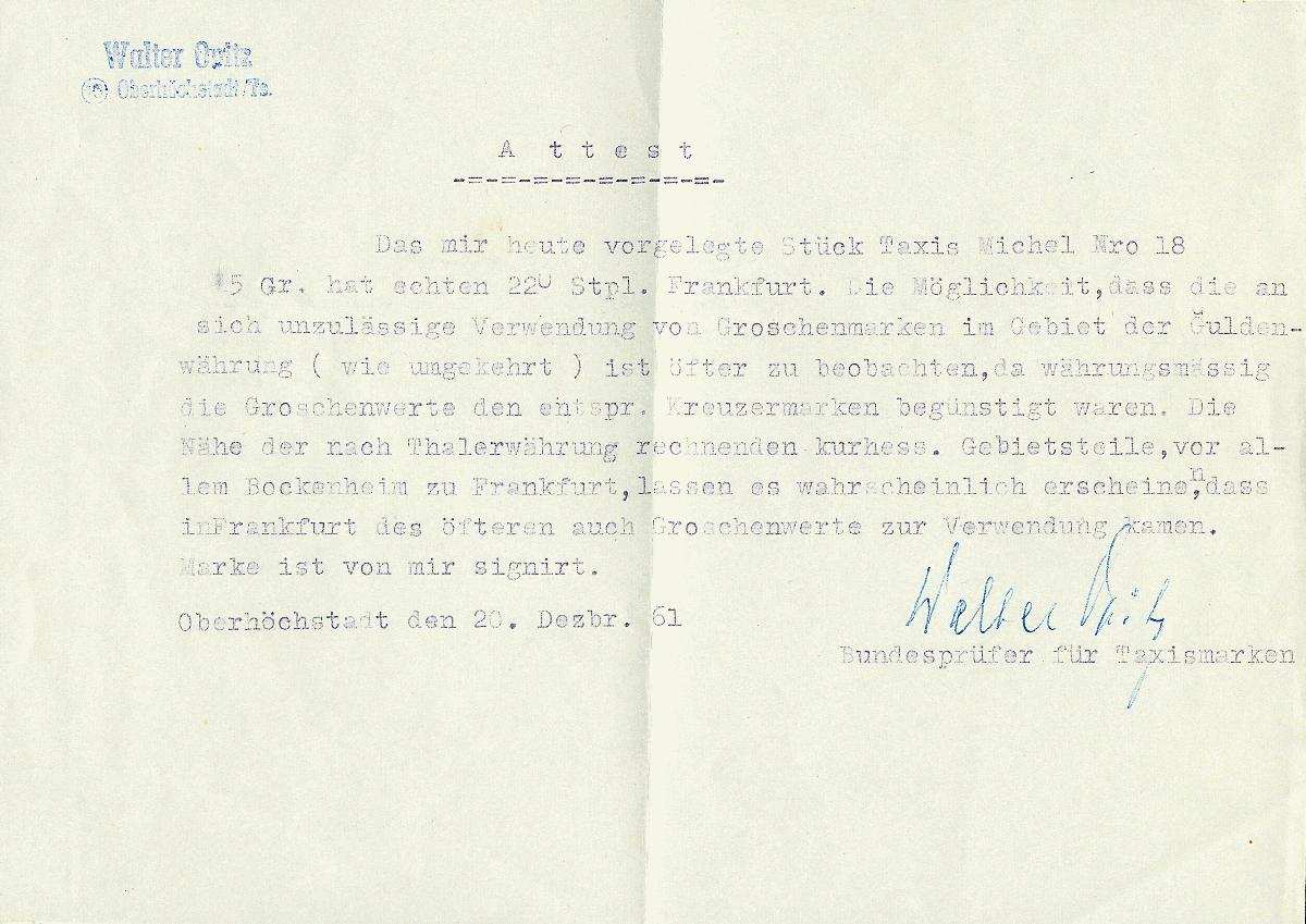 | Prüfgebiet: | Altdeutschland Thurn und Taxis |