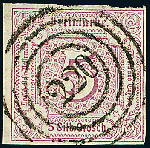 | Zusatzinformationen und Suchstichworte: | Dr. Derichs 170. Auktion 3. Juni 2023 Los 1381 Altdeutschland Thurn und Taxis \SILBERGROSCHEN-MARKE IM KREUZERBEZIRK\: 5 Sgr. braunpurpur, ringsum voll- bis breitrandig und links sogar mit kleinem Bogenrandteil, zentrisch gestempelt mit idealem Nummernstempel "220" FRANKFURT/MAIN. Luxus. Attest Walter Opitz (1961) und neues Fotoattest Sem BPP: "einwandfrei erhalten... Die hohen Sgr.-Werte sind mit Nummernstempeln aus den Kreuzergebieten nach meiner Meinung ungewöhnlich und selten." Zuschlag 320,00 EUR |