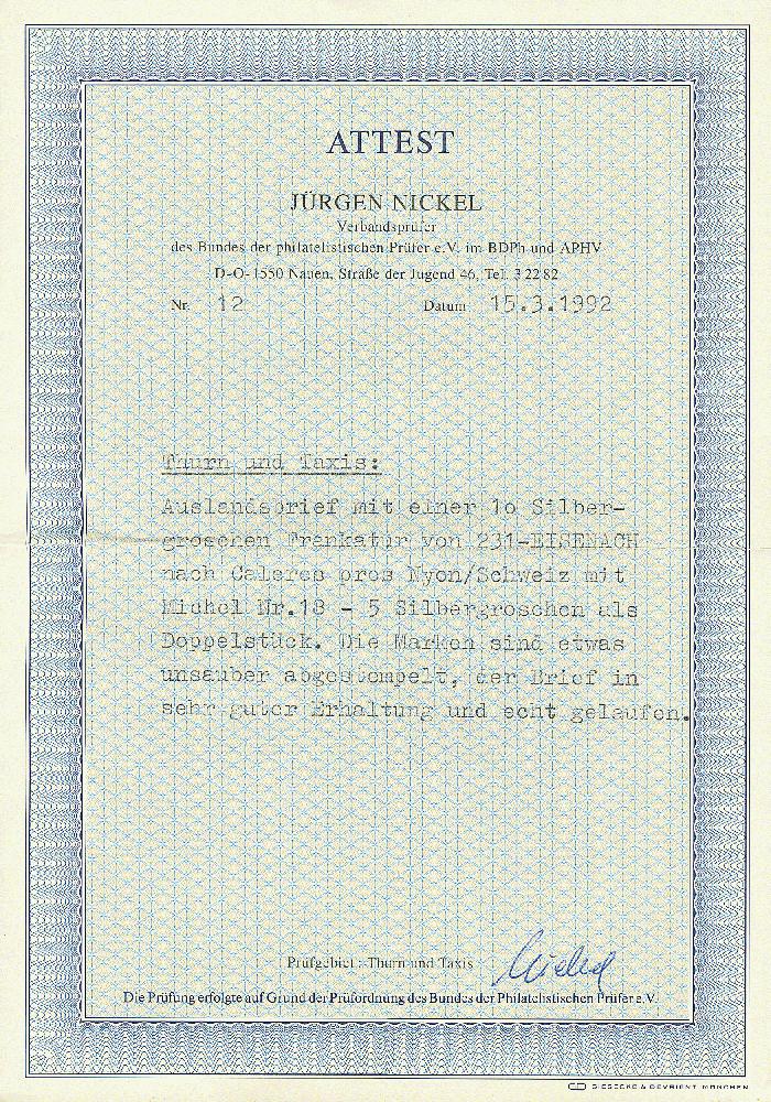 | Prüfgebiet: | Altdeutschland Thurn und Taxis |