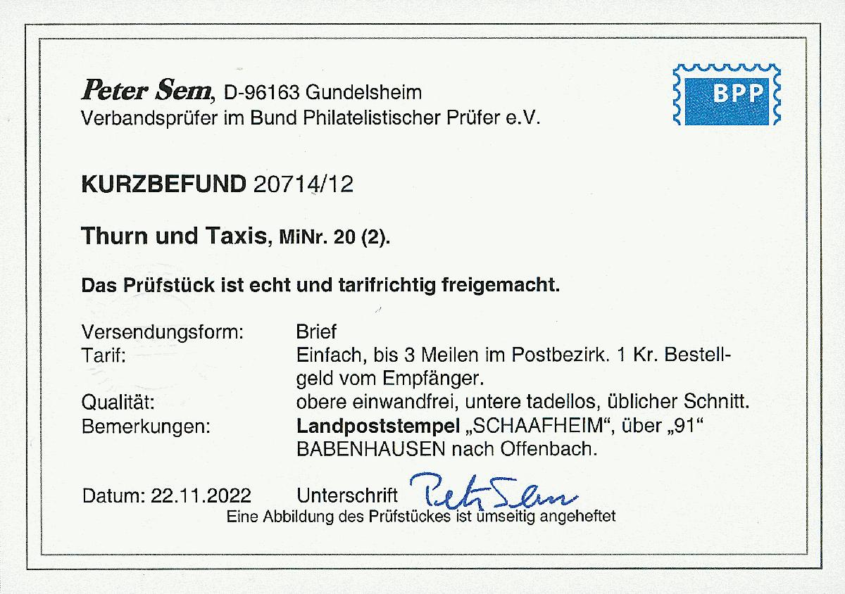 | Prüfgebiet: | Altdeutschland Thurn und Taxis |