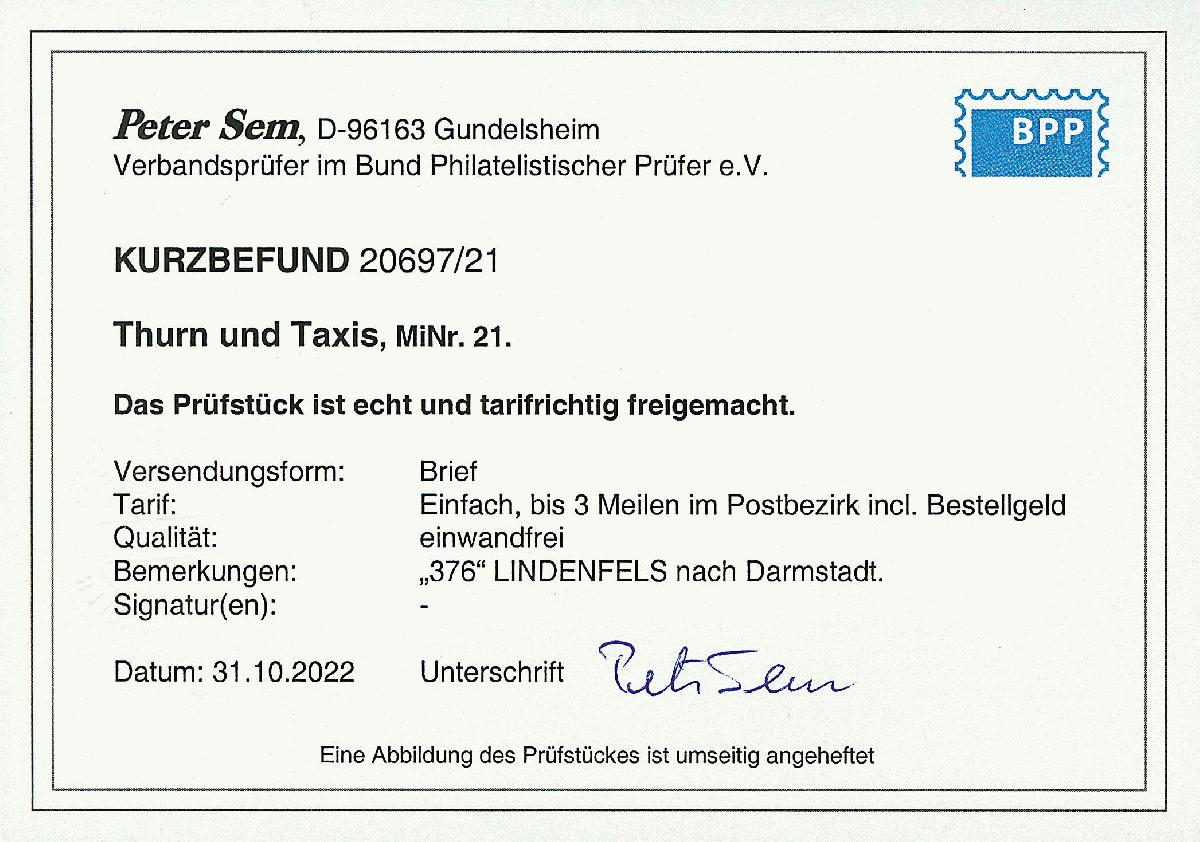 | Prüfgebiet: | Altdeutschland Thurn und Taxis |