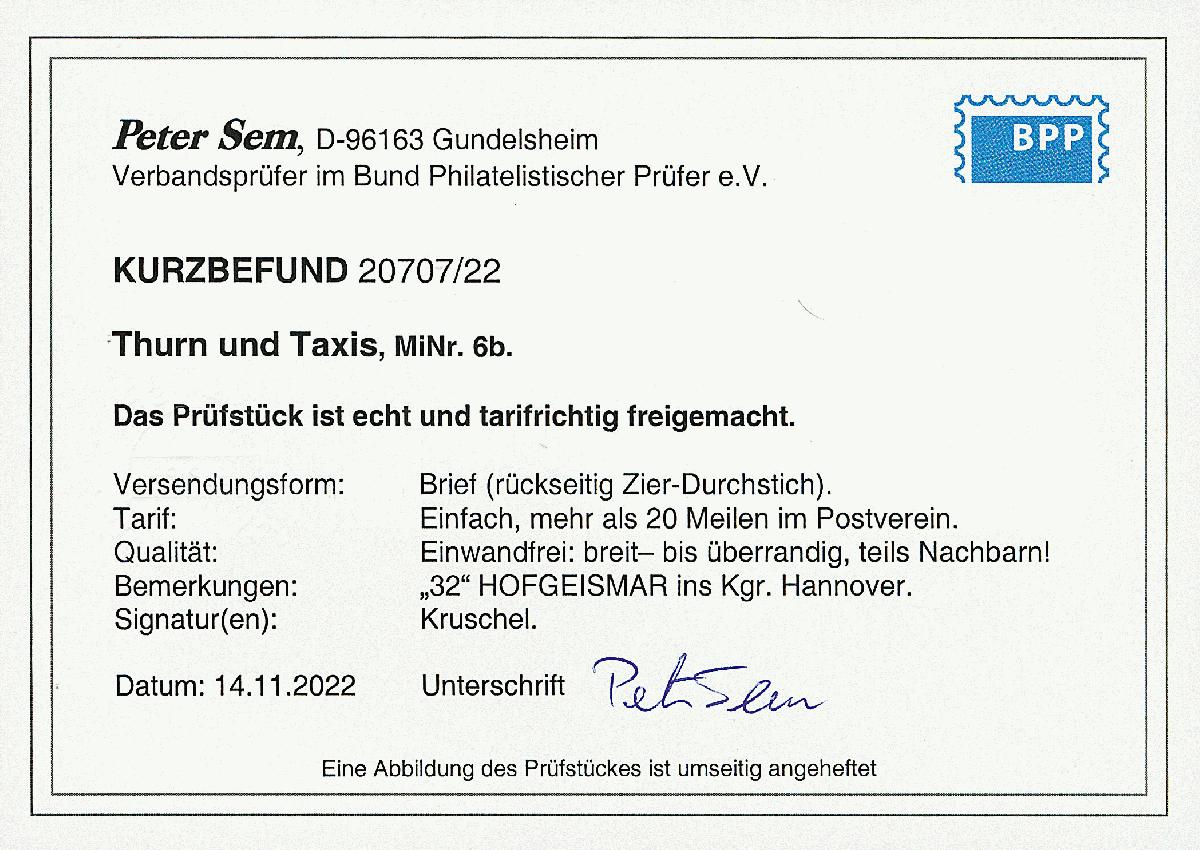 | Prüfgebiet: | Altdeutschland Thurn und Taxis |