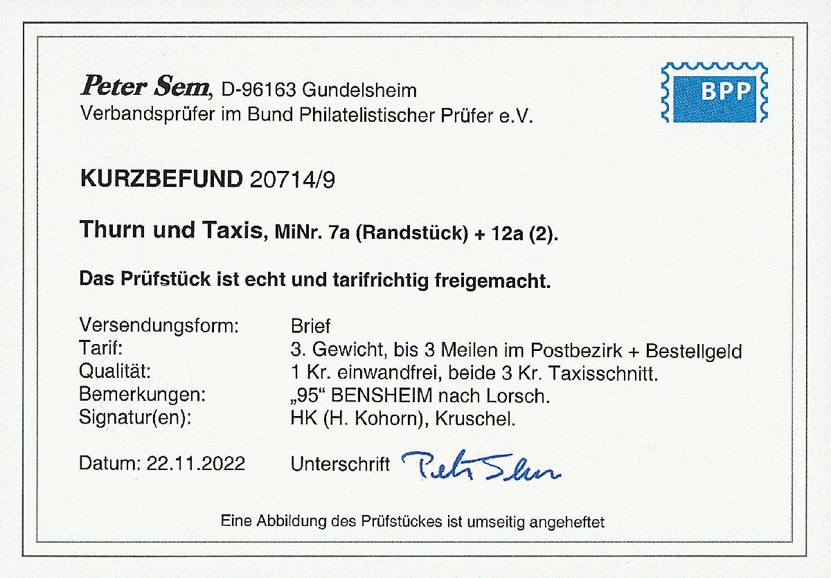 | Prüfgebiet: | Altdeutschland Thurn und Taxis |