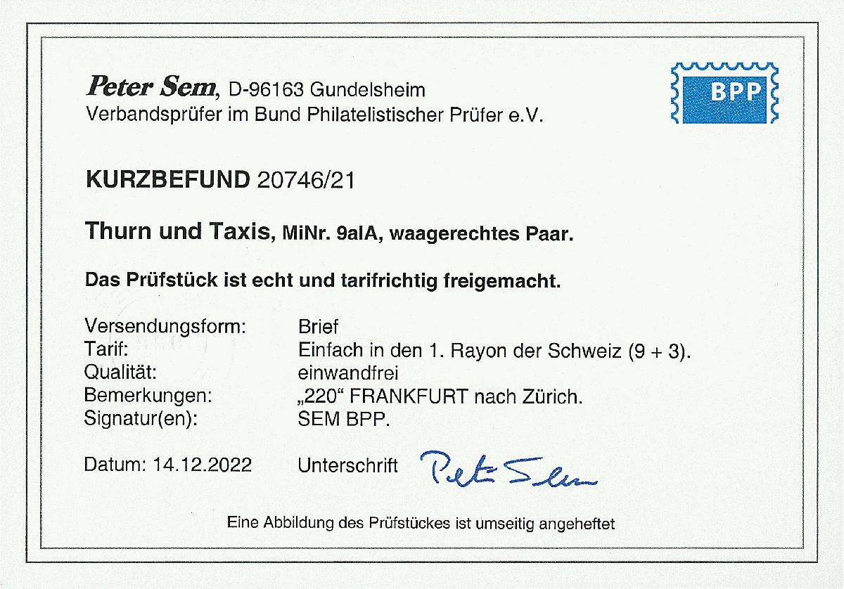 | Prüfgebiet: | Altdeutschland Thurn und Taxis |