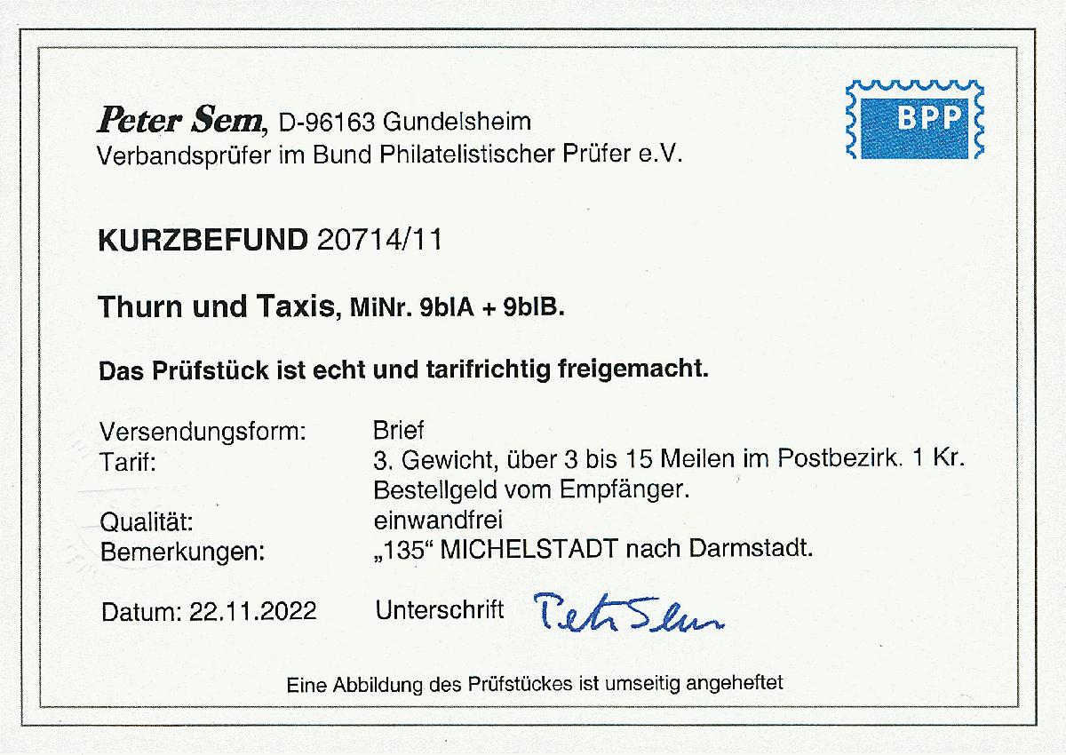 | Prüfgebiet: | Altdeutschland Thurn und Taxis |