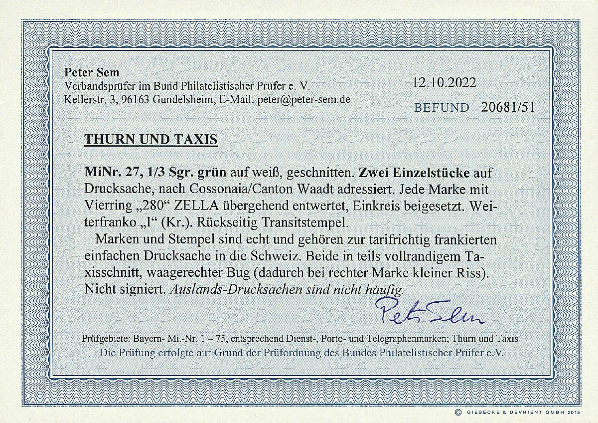 | Prüfgebiet: | Altdeutschland Thurn und Taxis |
