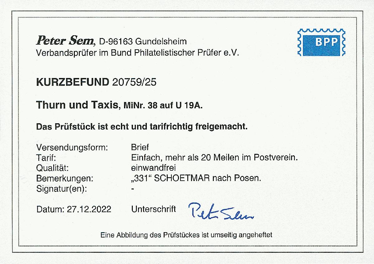 | Prüfgebiet: | Altdeutschland Thurn und Taxis |