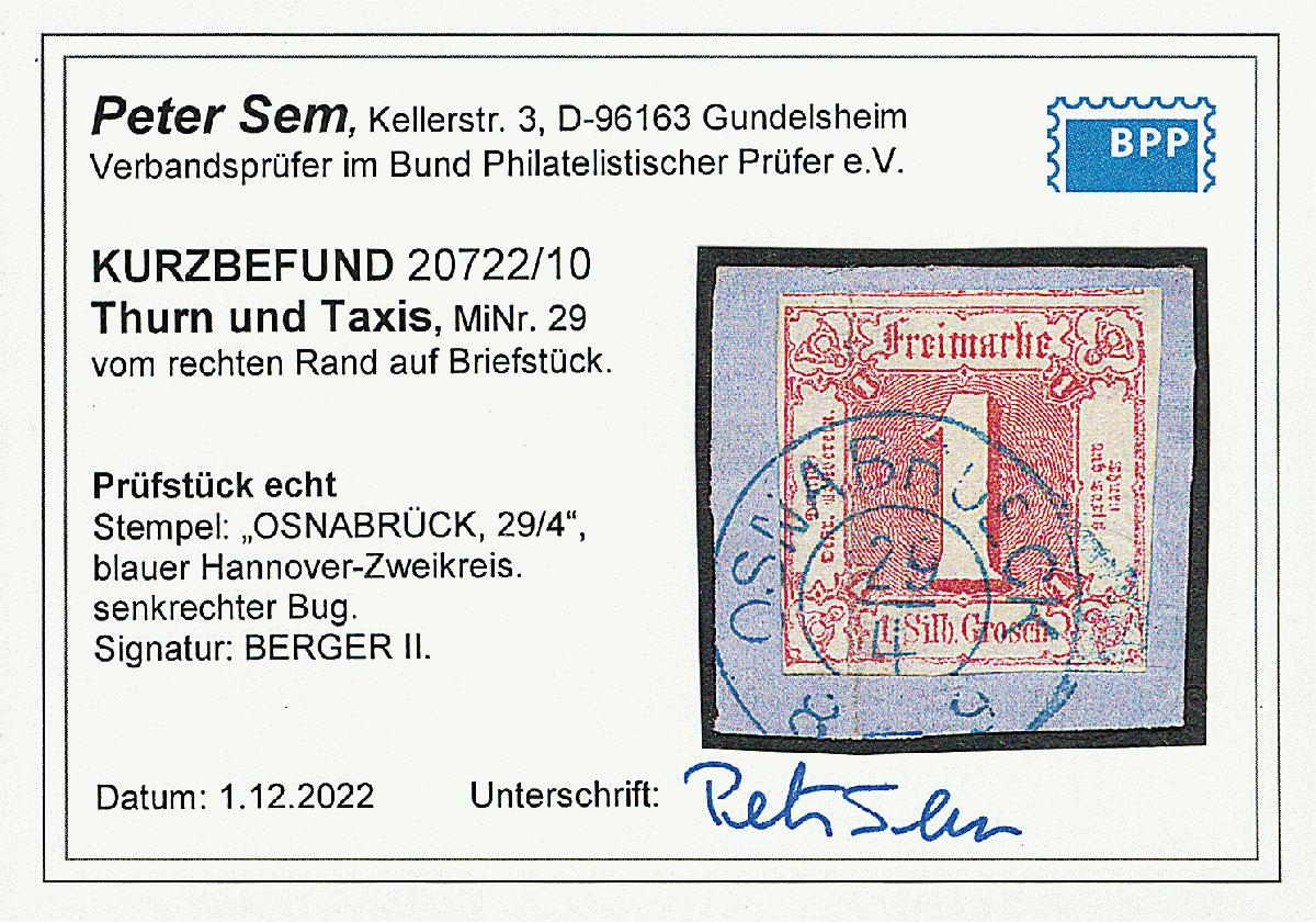 | Prüfgebiet: | Altdeutschland Thurn und Taxis |