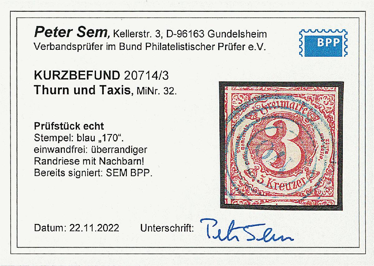 | Prüfgebiet: | Altdeutschland Thurn und Taxis |
