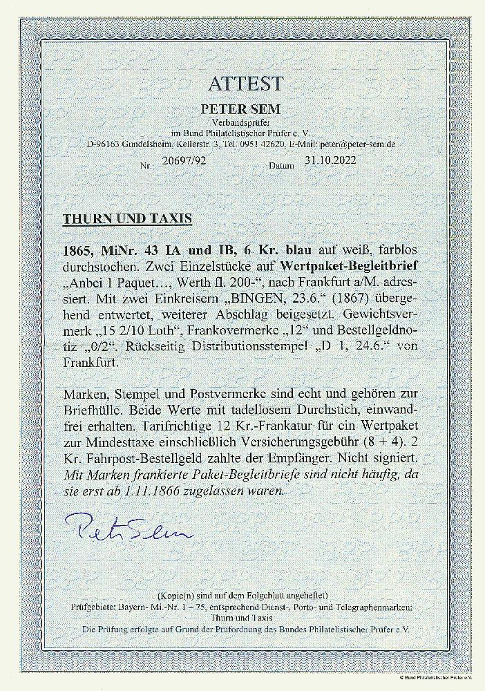 | Prüfgebiet: | Altdeutschland Thurn und Taxis |