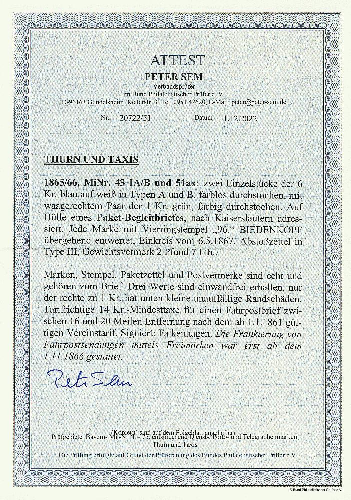 | Prüfgebiet: | Altdeutschland Thurn und Taxis |