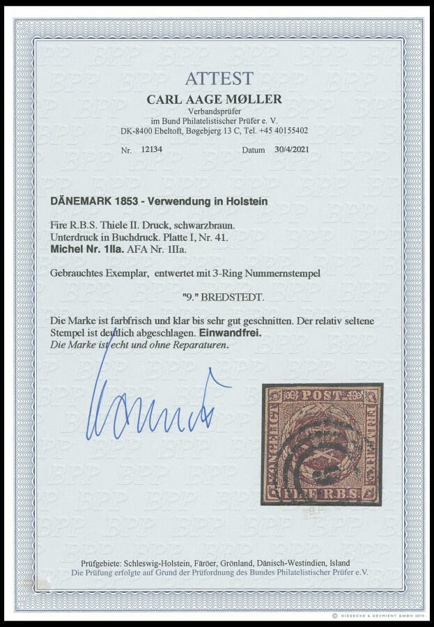 | Prüfer: | Möller, Carl Aage (BPP (Bund Philatelistischer Prüfer)) |