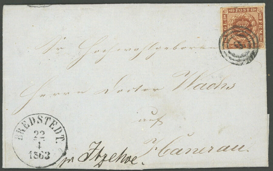 | Zusatzinformationen und Suchstichworte: | nordphila 491. Briefmarkenfernauktion 5. Juni 2023 Los 231 Altdeutschland Schleswig Holstein "9" (BREDSTEDT) auf 4 S. orangebraun "liniert" auf Brief nach Husum, Pracht Ausruf 80,00 EUR |