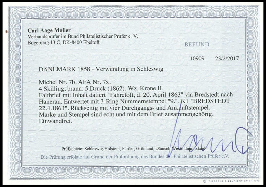 | Prüfgebiet: | Altdeutschland Schleswig-Holstein fremde Postanstalten |