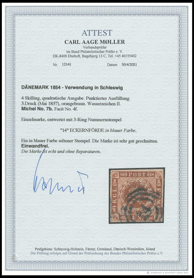 | Prüfer: | Möller, Carl Aage (BPP (Bund Philatelistischer Prüfer)) |