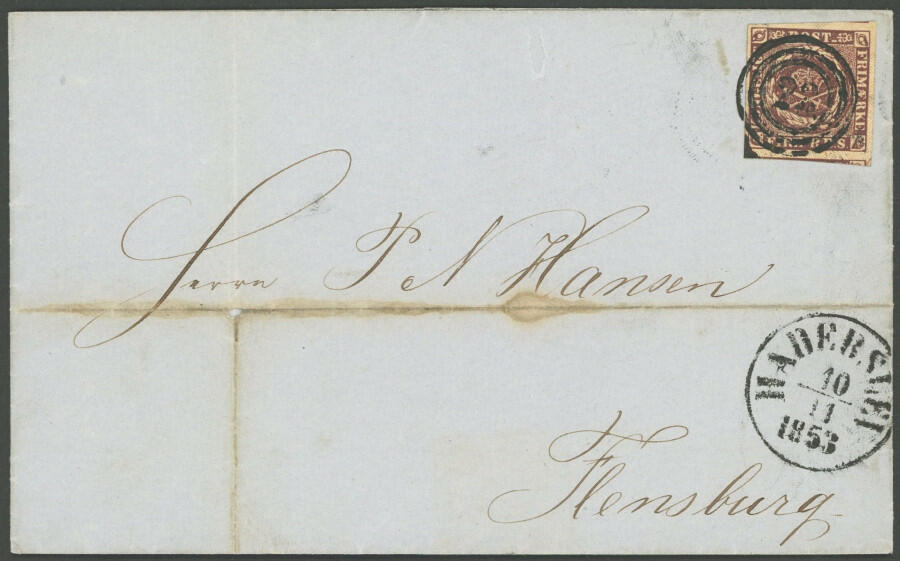| Zusatzinformationen und Suchstichworte: | nordphila 491. Briefmarkenfernauktion 5. Juni 2023 Los 245 Altdeutschland Schleswig Holstein "23" (HADERSLEBEN) auf 4 RBS schwarzbraun, Prachtstück auf Brief (Reg-bug) nach Flensburg Zuschlag 57,00 EUR |