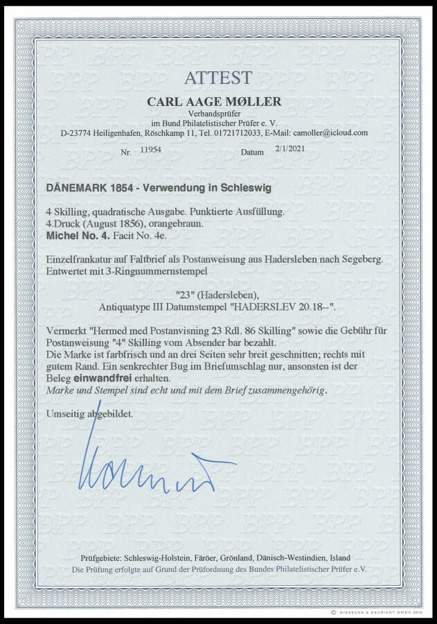 | Prüfer: | Möller, Carl Aage (BPP (Bund Philatelistischer Prüfer)) |