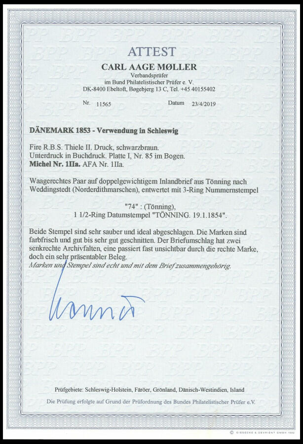 | Prüfer: | Möller, Carl Aage (BPP (Bund Philatelistischer Prüfer)) |