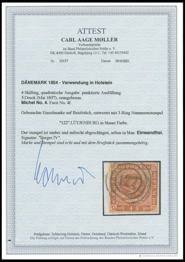 | Prüfer: | Möller, Carl Aage (BPP (Bund Philatelistischer Prüfer)) |