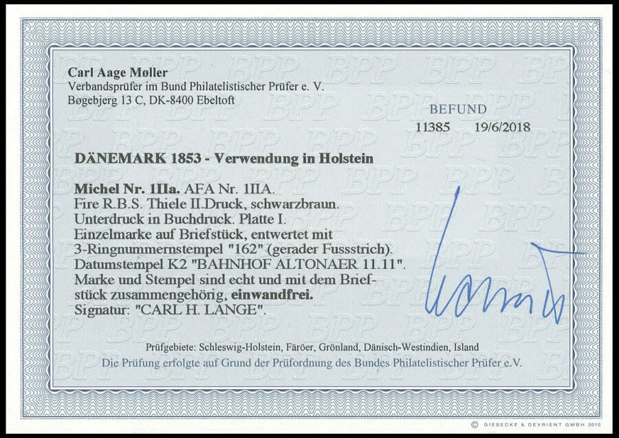| Prüfer: | Möller, Carl Aage (BPP (Bund Philatelistischer Prüfer)) |