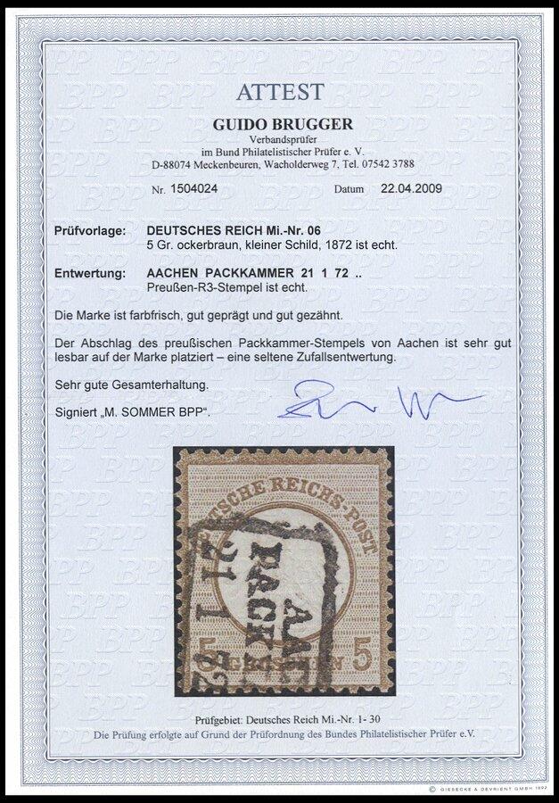 | Zusatzinformationen und Suchstichworte: | nordphila 491. Briefmarkenfernauktion 5. Juni 2023 Los 607 Deutsches Reich, 1872 Kleiner Brustschild 1872, 5 Gr. ockerbraun mit preußischem Packkammerstempel "AACHEN PACKKAMMER", R!, seltene Zufallsentwertung! Ausruf 140,00 EUR |