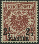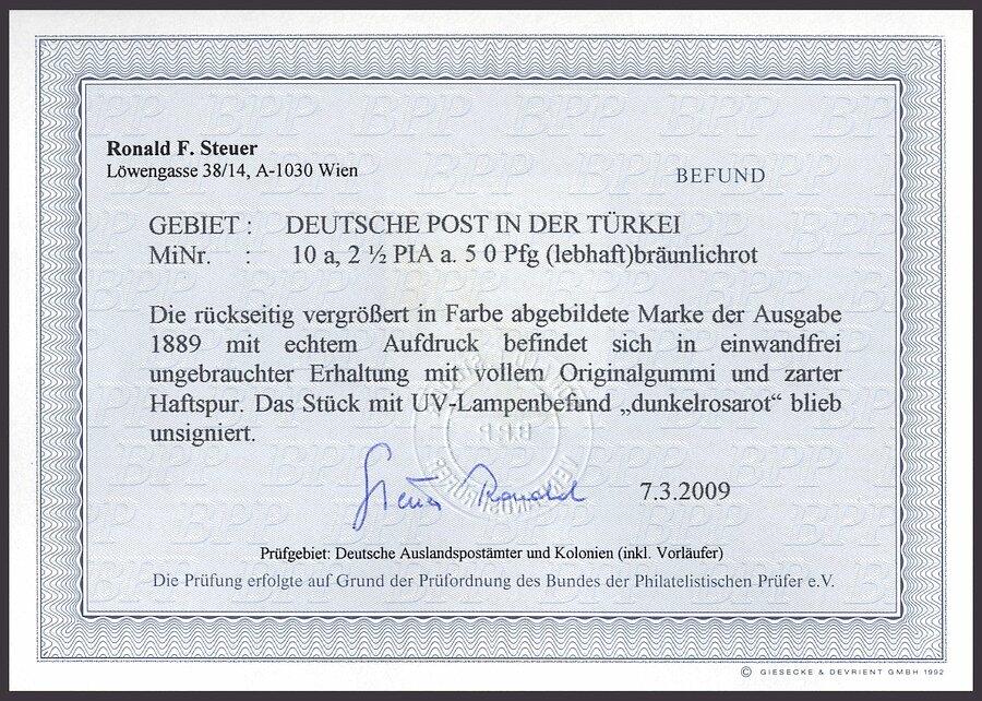 | Zusatzinformationen und Suchstichworte: | nordphila 491. Briefmarkenfernauktion 5. Juni 2023 Los 1813 Deutsche Auslandspost Türkei 1889, 2½ PIA. auf 50 Pf. bräunlichrot, Falzrest, Pracht Ausruf 160,00 EUR |